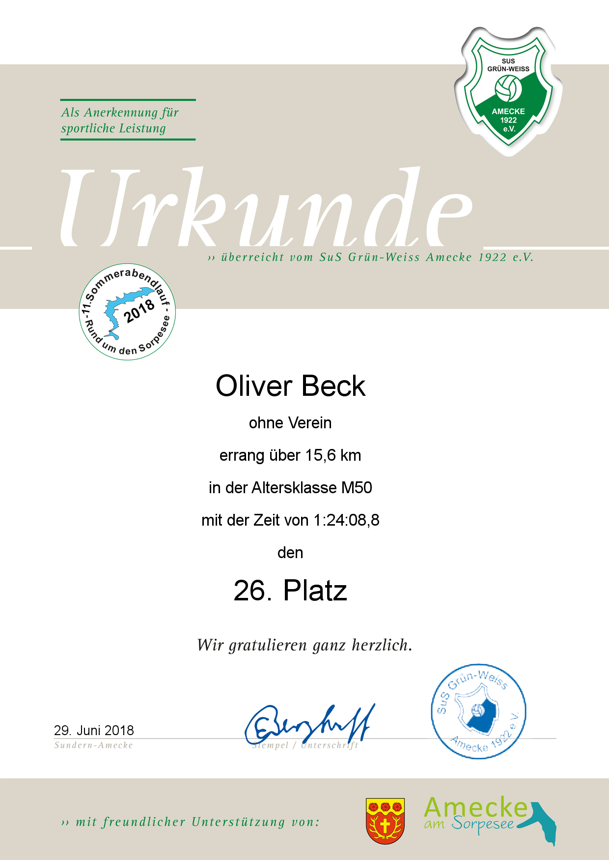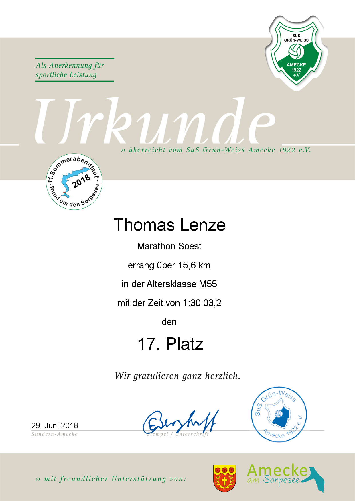 | Platz | Name | Vorname | Verein/Ort | Zeit | Platz G. | Urkunde |