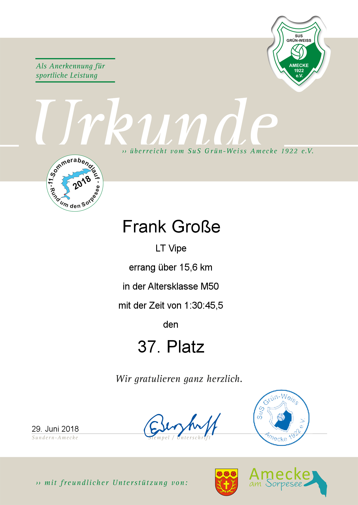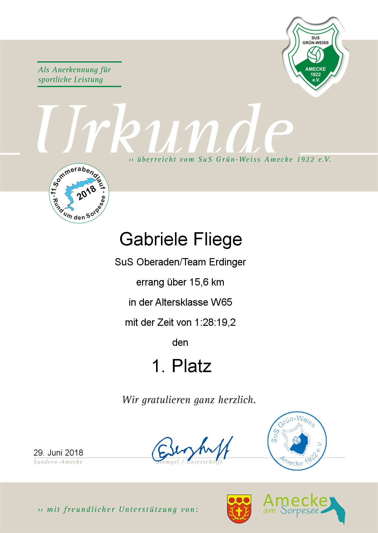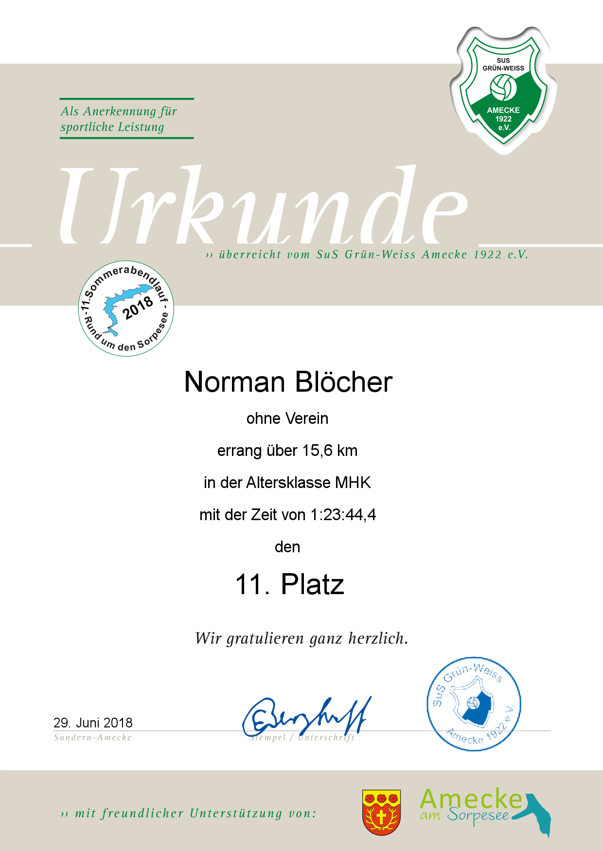 Der SuS GW Amecke bedankt sich bei allen Läufern die am 11. Sommerabendlauf "Rund um den Sorpesee" teilgenommen haben.